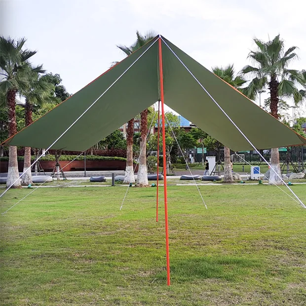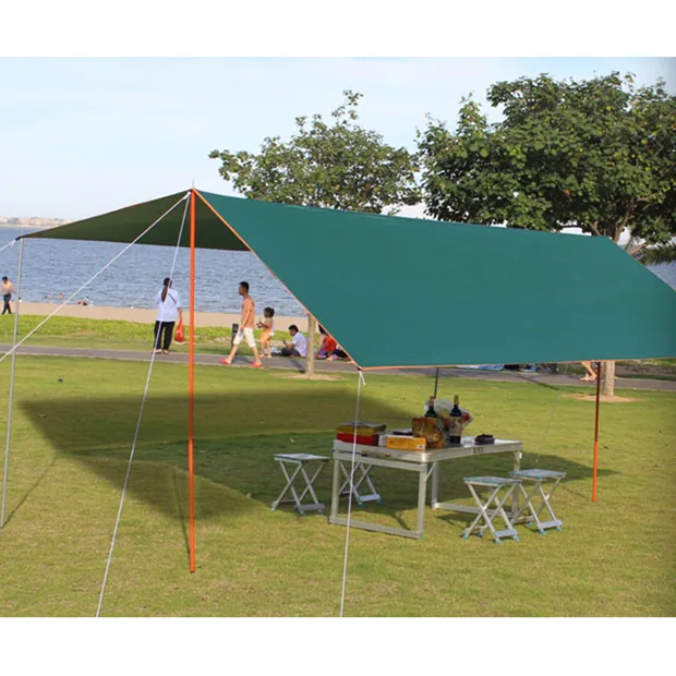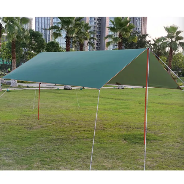 Camping Tarp Canopy เป็นกันสาดที่ใช้สำหรับการตั้งแคมป์กลางแจ้งที่สามารถให้ที่พักพิงและการป้องกันที่เชื่อถือได้แก่ผู้ใช้ ผ้าใบกันน้ำนี้ทำจากวัสดุกันน้ำน้ำหนักเบาและมีตะขอที่แข็งแรงหลายอันซึ่งสามารถยึดติดกับต้นไม้หรือจุดยึดอื่น ๆ ได้อย่างง่ายดาย ทำให้ผู้ใช้มีพื้นที่พักผ่อนที่สะดวกสบาย ปลอดภัย และมีการระบายอากาศ Camping Tarp Canopy ใช้งานได้อเนกประสงค์และสามารถใช้งานได้หลากหลายในกิจกรรมกลางแจ้ง การตั้งแคมป์ ลานบ้าน และพื้นที่เปิดโล่งอื่นๆ ช่วยป้องกันแสงแดดและฝน ทำให้ผู้ใช้สามารถเพลิดเพลินกับกิจกรรมกลางแจ้งได้ยาวนานขึ้น นอกจากนี้ยังเอื้อต่อการระบายอากาศตามธรรมชาติ และด้วยคุณสมบัติพิเศษของวัสดุ ผู้ใช้จึงสามารถออกกำลังกายแบบแอโรบิกในที่ร่มได้ ผ้าใบกันน้ำกลางแจ้งนี้สามารถถอดประกอบได้ตามต้องการและกลายเป็นบรรจุภัณฑ์น้ำหนักเบาซึ่งสะดวกมากในการพกพาได้ตลอดเวลา เหมาะสำหรับการใช้งานกลางแจ้งทุกประเภทและสามารถให้ที่พักพิงที่สะดวกสบายและปลอดภัยสำหรับการตั้งแคมป์กลางแจ้งทุกที่ทุกเวลา หลังคาผ้าใบกันน้ำสำหรับตั้งแคมป์เป็นอุปกรณ์เสริมสำหรับกิจกรรมกลางแจ้งที่ยอดเยี่ยมซึ่งทั้งใช้งานได้จริงและสวยงาม และยังช่วยเพิ่มความสะดวกสบายให้กับผู้ชื่นชอบกิจกรรมกลางแจ้งอีกด้วย ไม่ว่าคุณจะชอบตั้งแคมป์กลางแจ้งหรือเดินป่า หรือเล่นกลางแจ้งเป็นครั้งคราว คุณสามารถเลือก Camping Tarp Canopy เป็นตัวเลือกแรกได้