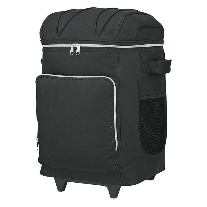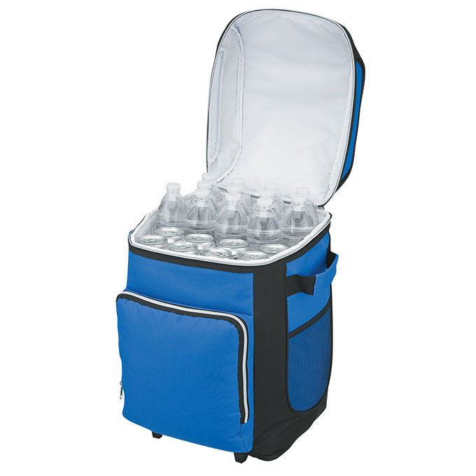 ความจุของกระเป๋าเก็บความเย็นแบบล้อลากสำหรับรถเข็นนี้บรรจุกระป๋องได้ 48 กระป๋องหรือขวดไวน์และอาหารบางชนิด